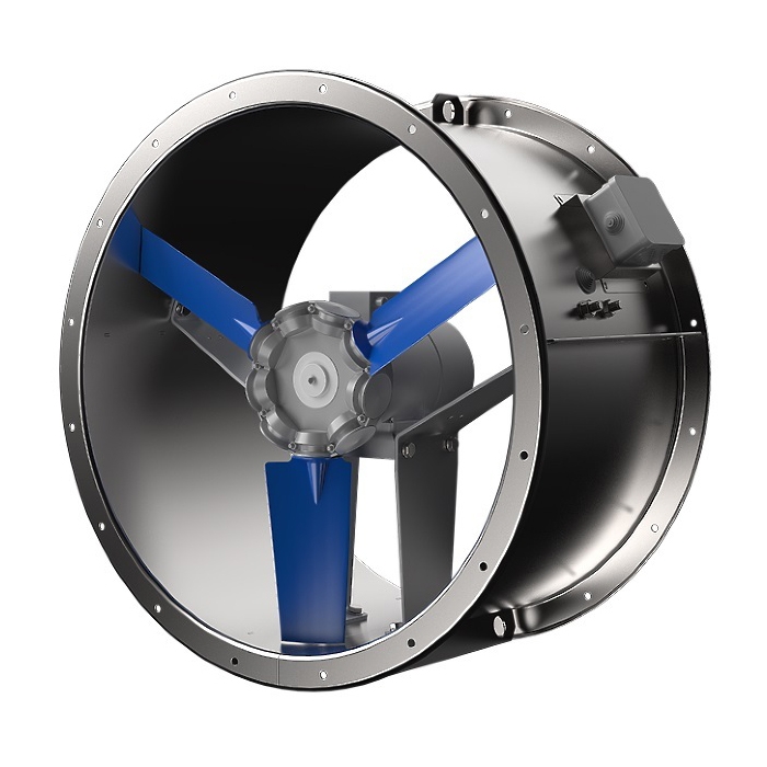 осевой вентилятор, максимальный расход воздуха 47 120 куб. м/ч, частота вращения 3 000 1/мин, максимальный располагаемый напор 1 126 Па, присоединительный размер 710 мм, материал корпуса: сталь, монтаж: в воздуховод, степень защиты: IPX4